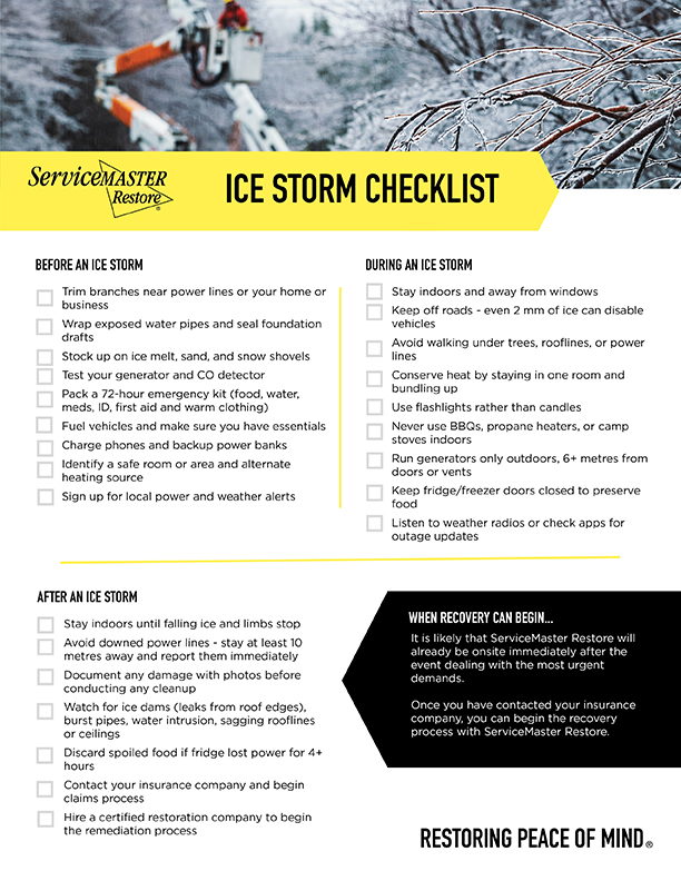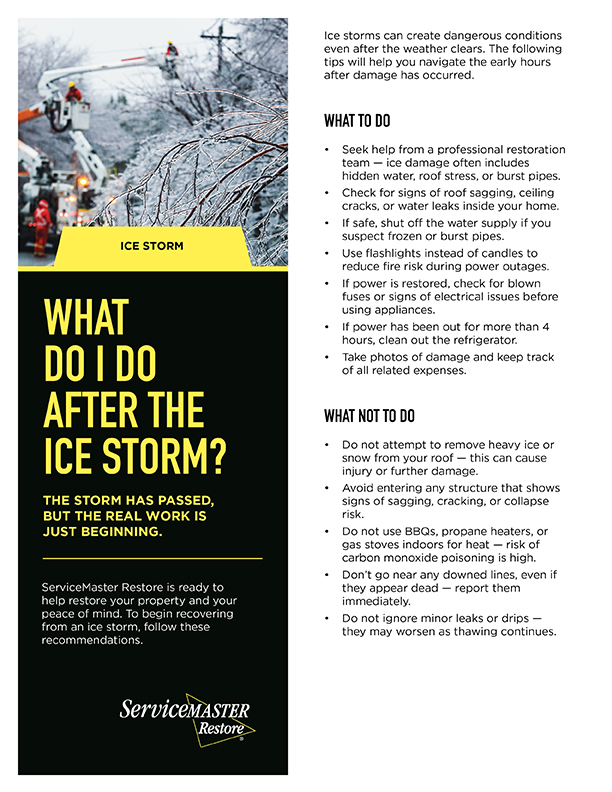 Ice storms can devastate homes and businesses — from downed power lines and burst pipes to roof collapse and structural damage. When everything freezes over, fast action is critical. That’s why ServiceMaster Restore of Dryden, Kenora and Fort Francis is standing by 24/7 to help you recover quickly and safely.